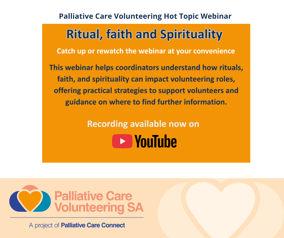- Rituals, Faith and Spirituality – Strategies for coordinators to support volunteers (Guest Speaker: Rachel Wes, Meaningful Ageing Australia) → https://youtu.be/aK2uTPzKs_o